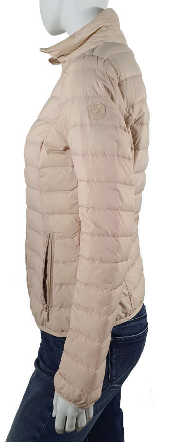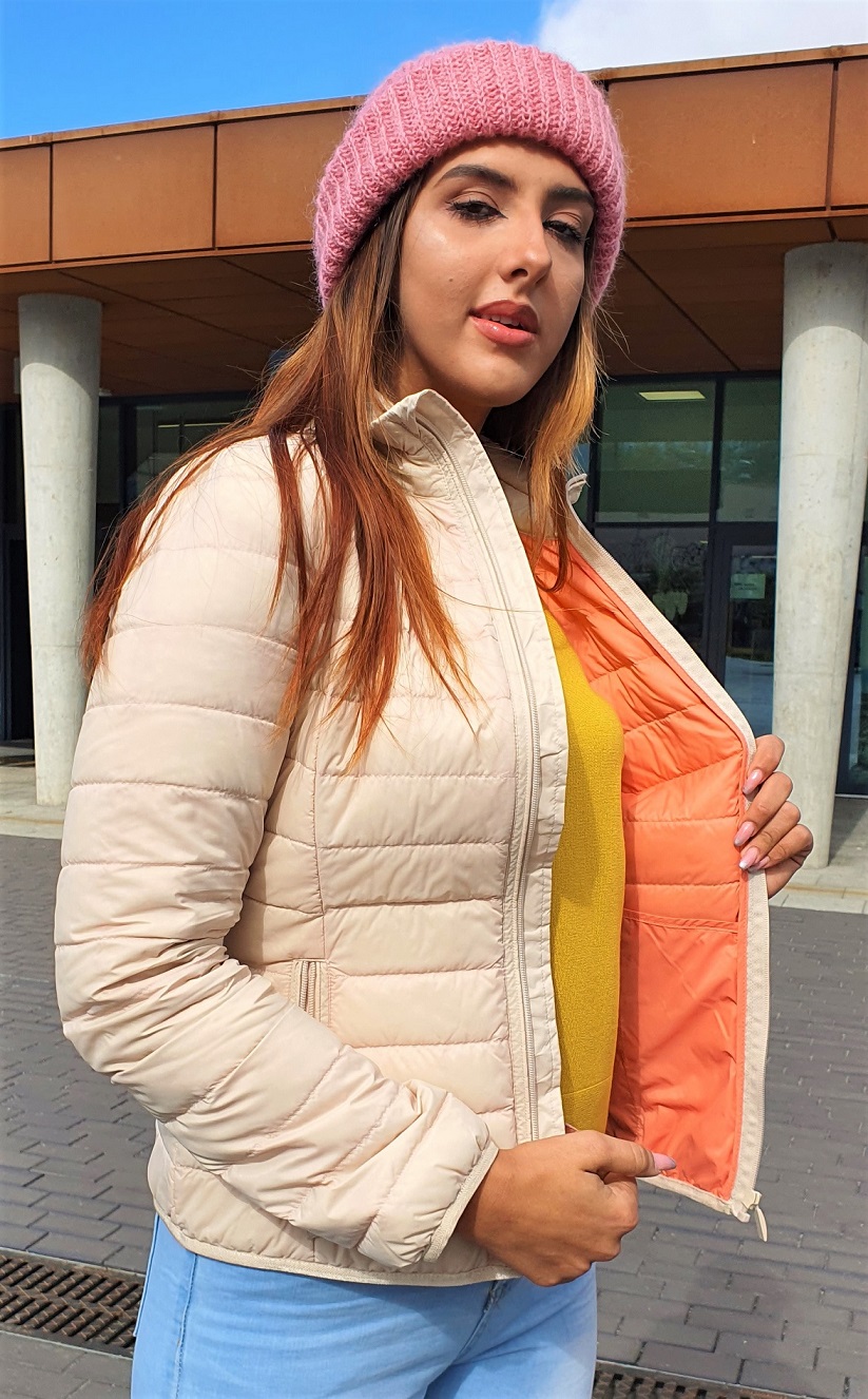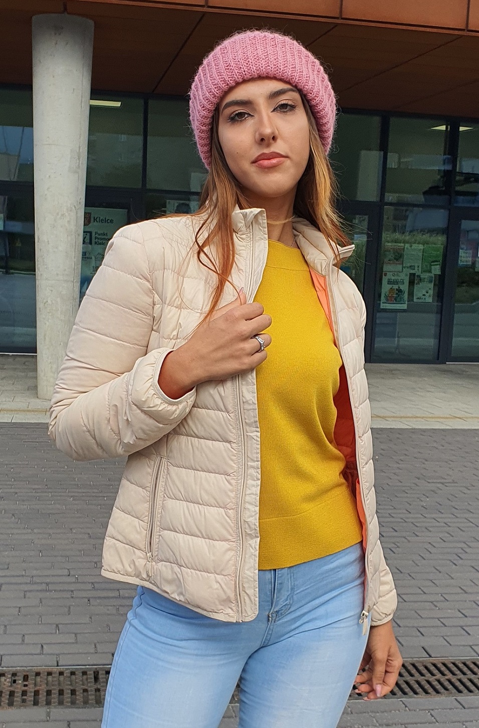 Elegancka wiosenna kurtka Armani Jeans. Cienka, puchowa, lekka. W kolorze ciepłego beżu dodatkowego ożywionego podszewką w kolorze zgaszonej pomarańczy która lekko "przebija" przez beżowy materiał zewnętrzny, czyniąc jego odcień nieco cieplejszym. Dwie zasuwana kieszeni zewnętrzne, dwie kieszenie wewnętrzne. Bez kaptura. Dyskretne beżowe logo na jednym z rękawów. Ponadczasowy kolor będzie pasował do wszystkiego. Idealna na wiosnę, chłodne wieczory latem oraz wczesną jesień. Nieco grubsza niż najcieńsze kurtki ze sportowej linii EA7. UWAGA! Ze względu na włoską rozmiarówkę radzimy kierować się wymiarami w centymetrach.
