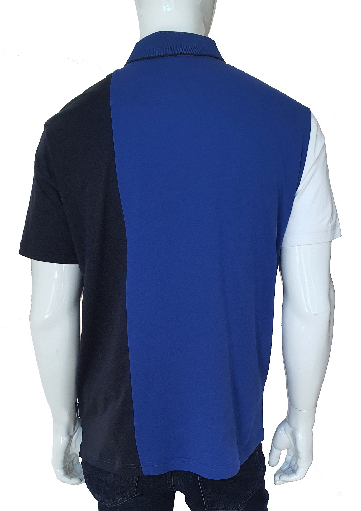 Męska koszulka polo Armani Exchange. W kolorach czerni, szafiru i bieli. Zamiast guziczków przy szyki, ma suwak. Na froncie naklejany stylizowany logotyp Armani Exchange. Cienka wysokogatunkowa bawełna. Będzie świetnie wyglądać z jeansami, ale też ze spodniami białymi typu chinos lub błękitnymi lnianymi. Koszulki polo różnych linii domu mody Armani są stale oferowane przez nasz outlet i zawsze w cenach niższych niż pierwotne w butiku. Można prać w pralce w 30 stopniach. Uwaga, w przypadku tego modelu realna rozmiarówka jest wyższa niż podana na metce. Dla przykładu XL jest raczej rozmiarem 2XL.