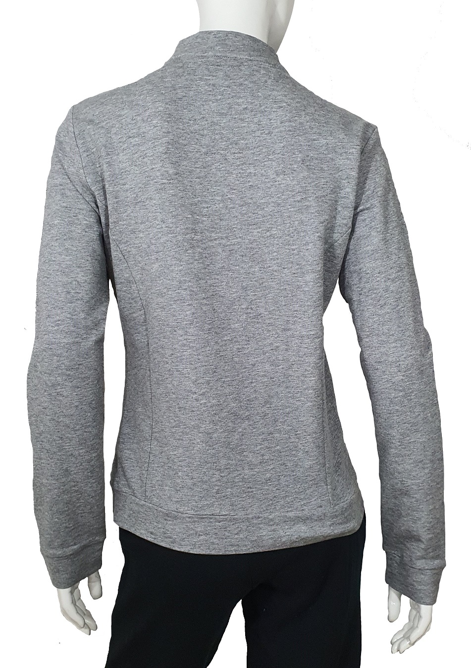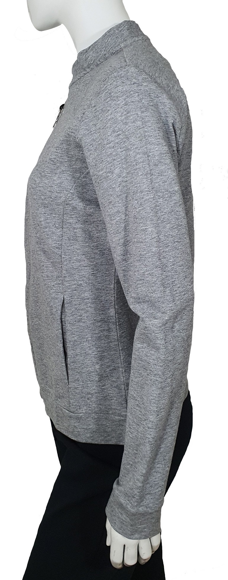 Szara bluza Emporio Armani EA7. Bardzo miła tkanina. Zasuwana bez kaptura. Przy szyi niewielka stójka. Dwie kieszenie zewnętrzne. Gładkie, delikatne ściągacze. Dyskretne, lekko skrzące, srebrzyste logo na froncie przy lewym ramieniu. Idealna do każdej casualowej stylizacji.