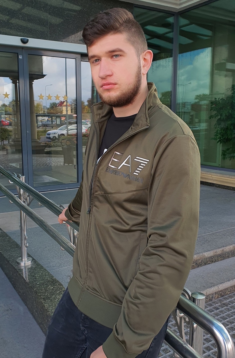 Zielona, w kolorze khaki (na metce oznaczony jako black forest) męska bluza dresowa Emporio Armani EA7.