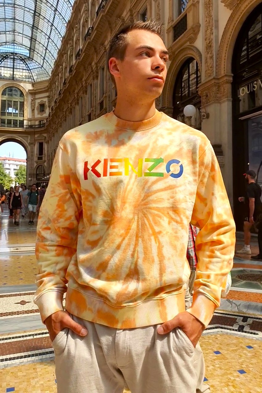 Bluza legendarnego, francuskiego domu mody KENZO. Tkanina lekko ocieplana typu "barchan". Od spodu przypomina strukturą polar. Pod szyją, na mankietach i w pasie prążkowany ściągacz. Od frontu drukowany logotyp KENZO. Prać ręcznie w 30 stopniach.