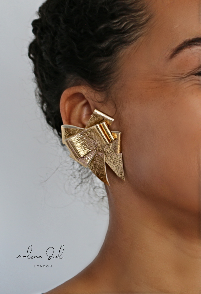 Zalotne, kobiece kolczyki, wykonane z delikatnej złotej skóry naturalnej