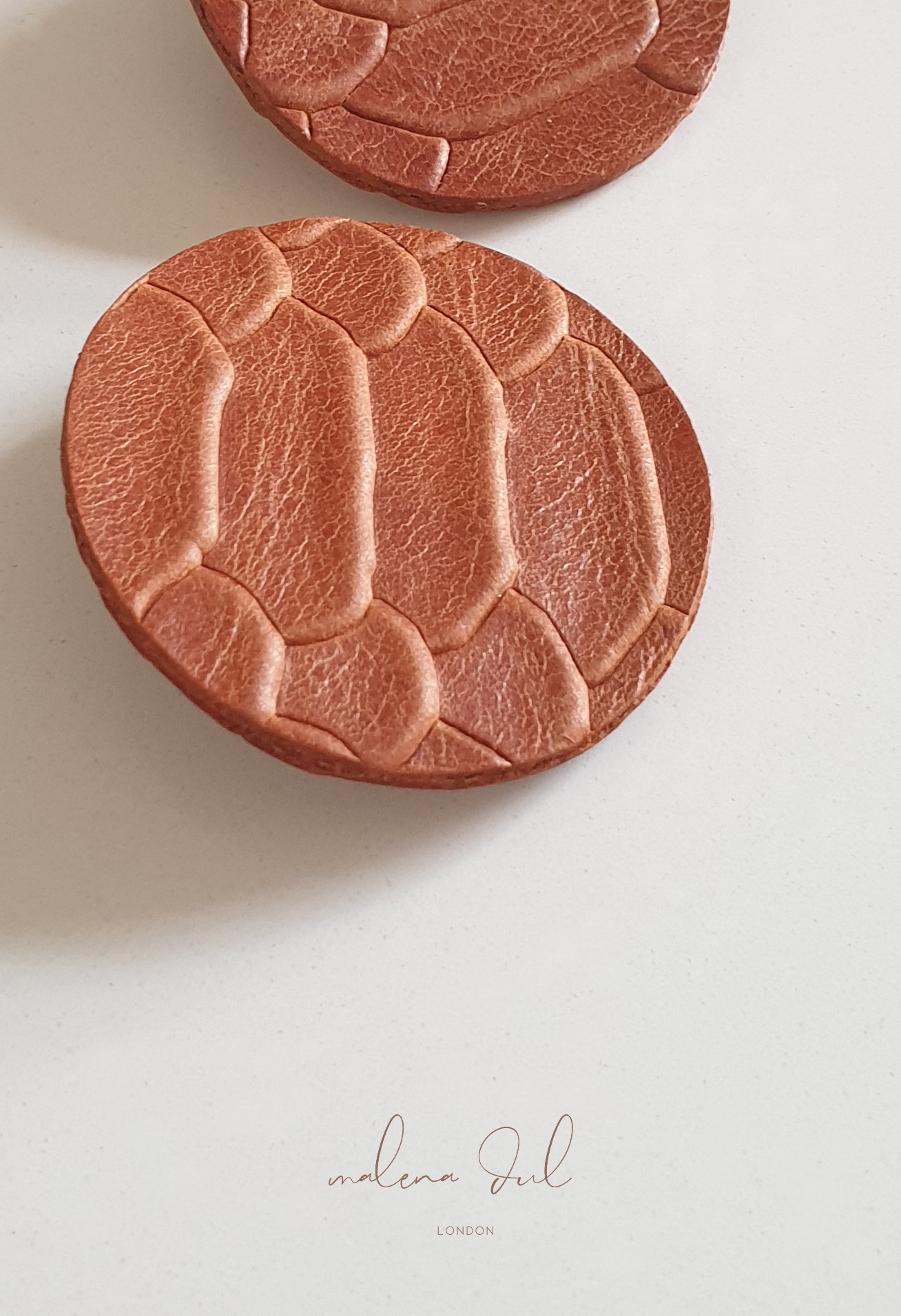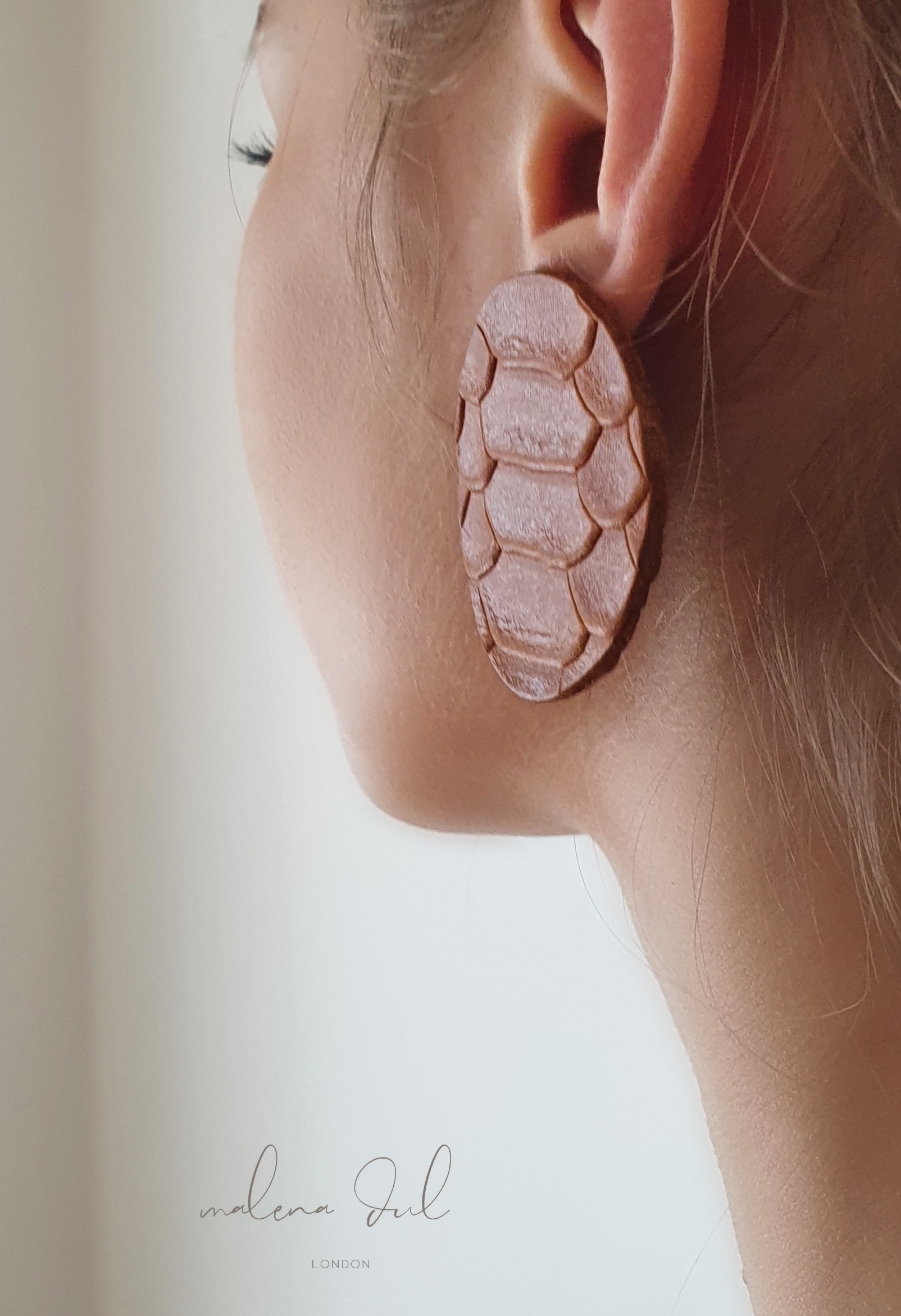 Kolekcja SUN. Spektakularne, duże, geometryczne kolczyki, wykonane ze skóry naturalnej w ciepłym odcieniu brązu, tłoczonej we wzór skóry krokodyla. Niezwykła, nieregularna faktura skóry węża. Klasyczne i bardzo eleganckie. Swoją formą przywodzą w pamięci odważne lata 80te. Pięknie komponują się z prostymi w formie stylizacjami. Sprawdzą się jako niebanalny dodatek to sukienki, marynarki, golfu czy prostego t-shirtu i jeansow. Wygodne i lekkie. Kolczyki występują w kilku kolorach/wzorach.