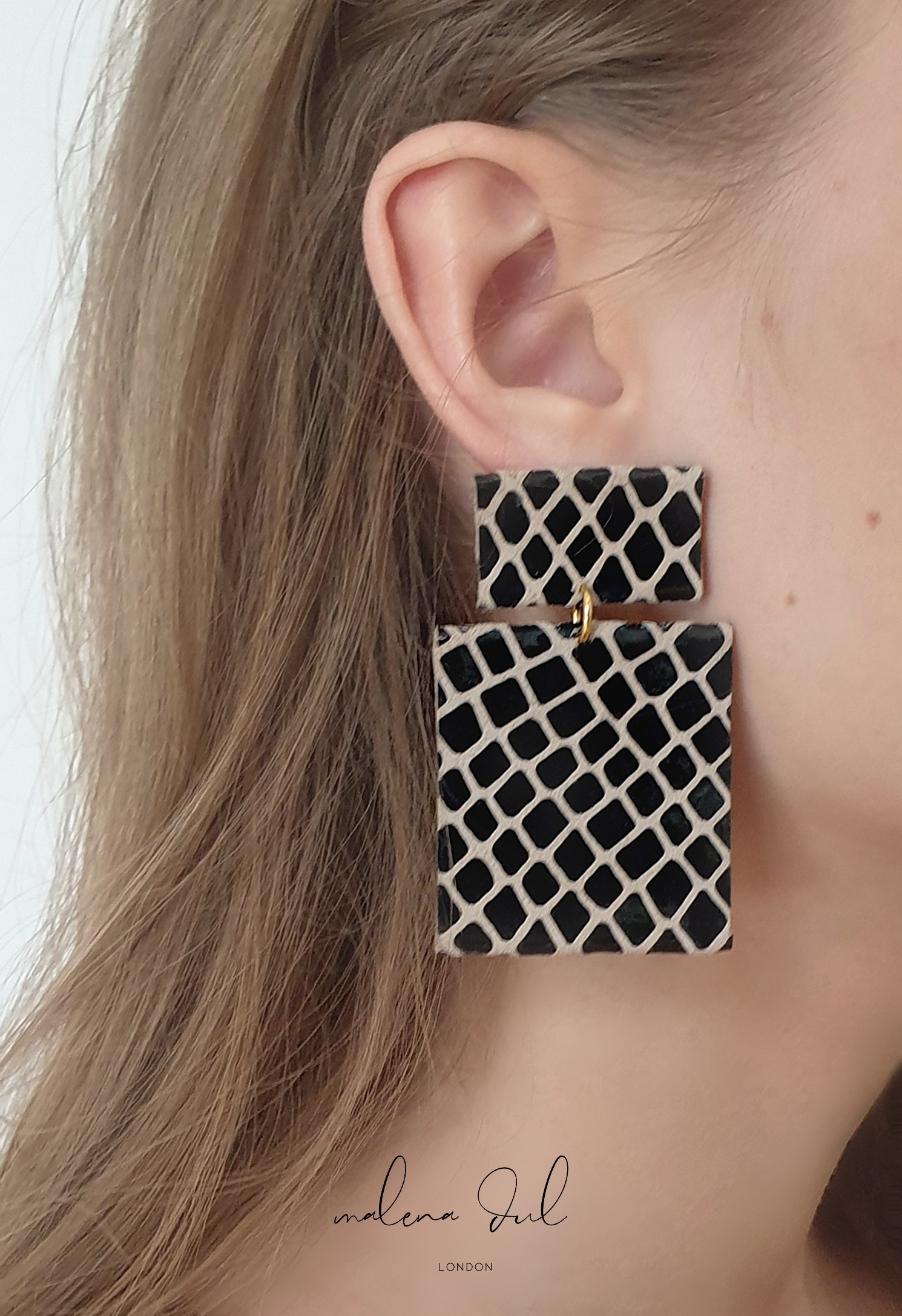 Kolekcja RAW, to spektakularne, dużych rozmiarów kolczyki i bransoletki w ponadczasowe animalistyczne motywy.Wykonane z czarnej, lakierowanej skóry w beżowy print skóry krokodyla. Eklektyczne, niebanalne w formie. Łączą w sobie sprzeczności jak surowość z elegancja, prostotę z zaskaującą formą. Pięknie komponują się z prostymi w formie stylizacjami, koszulą, garniturem, golfem, prostą długą suknią czy małą czarną. Wygodne, nie obciążają ucha. Kolczyki występują w kilku kolorach/wzorach jak zebra, krokodyl czy wąż.