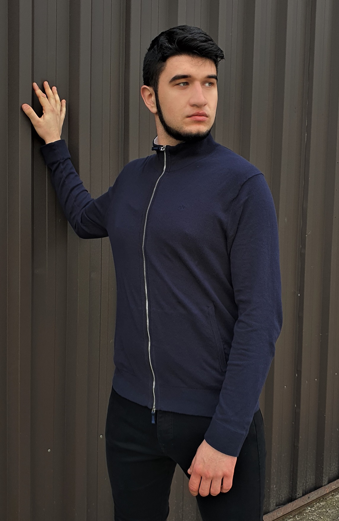 Granatowy sweter typu kardigan Armani Exchange. Idealny pomysł na prezent pod choinkę. Dlaczego warto mieć taki sweter w szafie? Bo jest doskonały na chłodne dni, wygodny, ciepły, a jednocześnie niezbyt gruby, można go prać ręcznie, ma praktyczny granatowy kolor i świetnie układa się na ciele. Półgolf przy szyi dodatkowo zapewnia ochronę przed wiatrem i zimnem, dla tych, którzy zimą nie lubią nosić szalików. Od frontu ma dwie zasuwane wygodne kieszenie. Na bocznym szwie dyskretne wszywka Armani Exchange. Na froncie dyskretnie wyhaftowane granatową nitką logo AX. Wszystkie nasze kardigany i swetry Armani Exchange można także przymierzyć i zobaczyć na żywo. Taką możliwość oferuje nasz outlet stacjonarny, którego siedzibą są Kielce. Prać ręcznie.