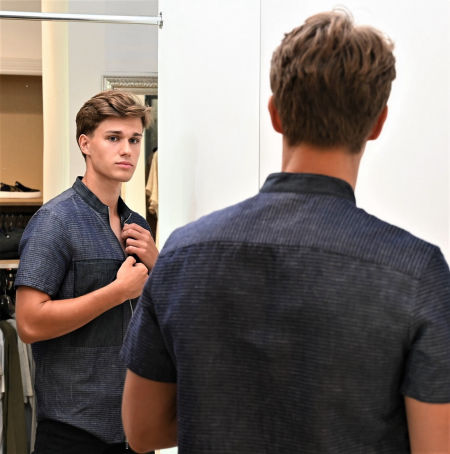 Bardzo ciekawa zasuwana, sportowa koszula marki Armani Exchange ze stójką i z krótkim rękawem. Jest trochę koszulą, trochę bluzą z krótkim rękawem, trochę ubraniem w kroju over fit. Można ją nosić bezpośrednio na ciało, albo zakładać t-shirt, a koszulę nosić rozsuniętą. Z przodu duża, głęboka kieszeń z gładkiej tkaniny z haftowanym orzełkiem Armaniego. Krój prosty, nie taliowany, bez żadnych szczypanek z tyłu. Dobry skład, bo koszula zawiera włókna jedwabne oraz lniane. Prać w 30 stopniach. Uwaga, koszula oznaczona jako II gatunek, bo nie posiada papierowej oryginalnej metki. Ostatnia sztuka. Model na zdjęciu ma wzrost 186 cm, nosi rozmiar S, a na zdjęciu ma koszulę w rozmiarze M.