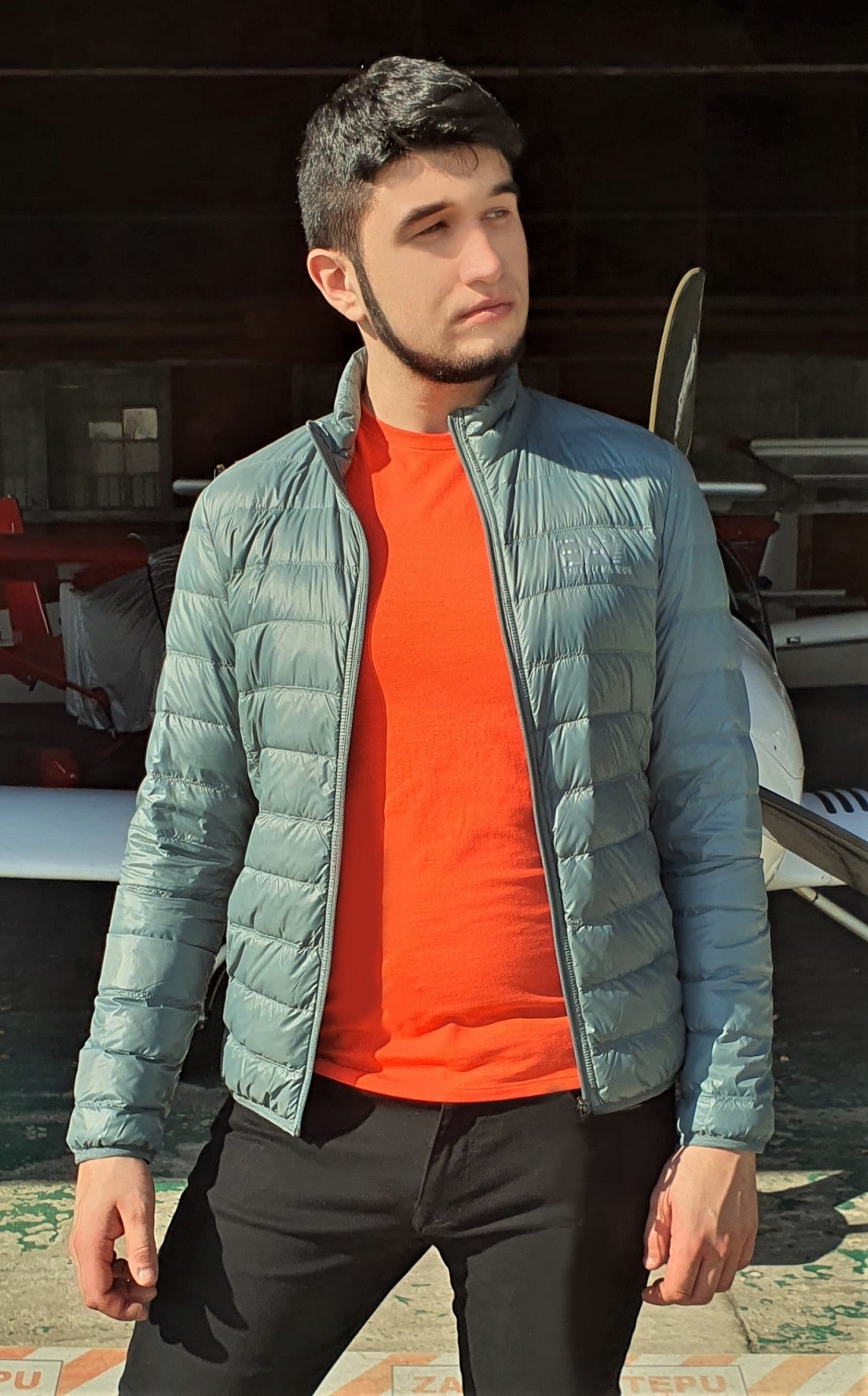 Lekka, cienka, puchowa, klasyczna męska kurtka Emporio Armani EA7 bez kaptura. Najbardziej lubiany fason kurtki, który podbił gust klientów na całym świecie. Ciekawy kolor, zieleni, "złamanej" szarością, który producent określił mianem "dark forest". Dwie kieszenie boczne, dwie kieszenie wewnętrzne. Logotyp w kolorze matowego srebra na froncie.