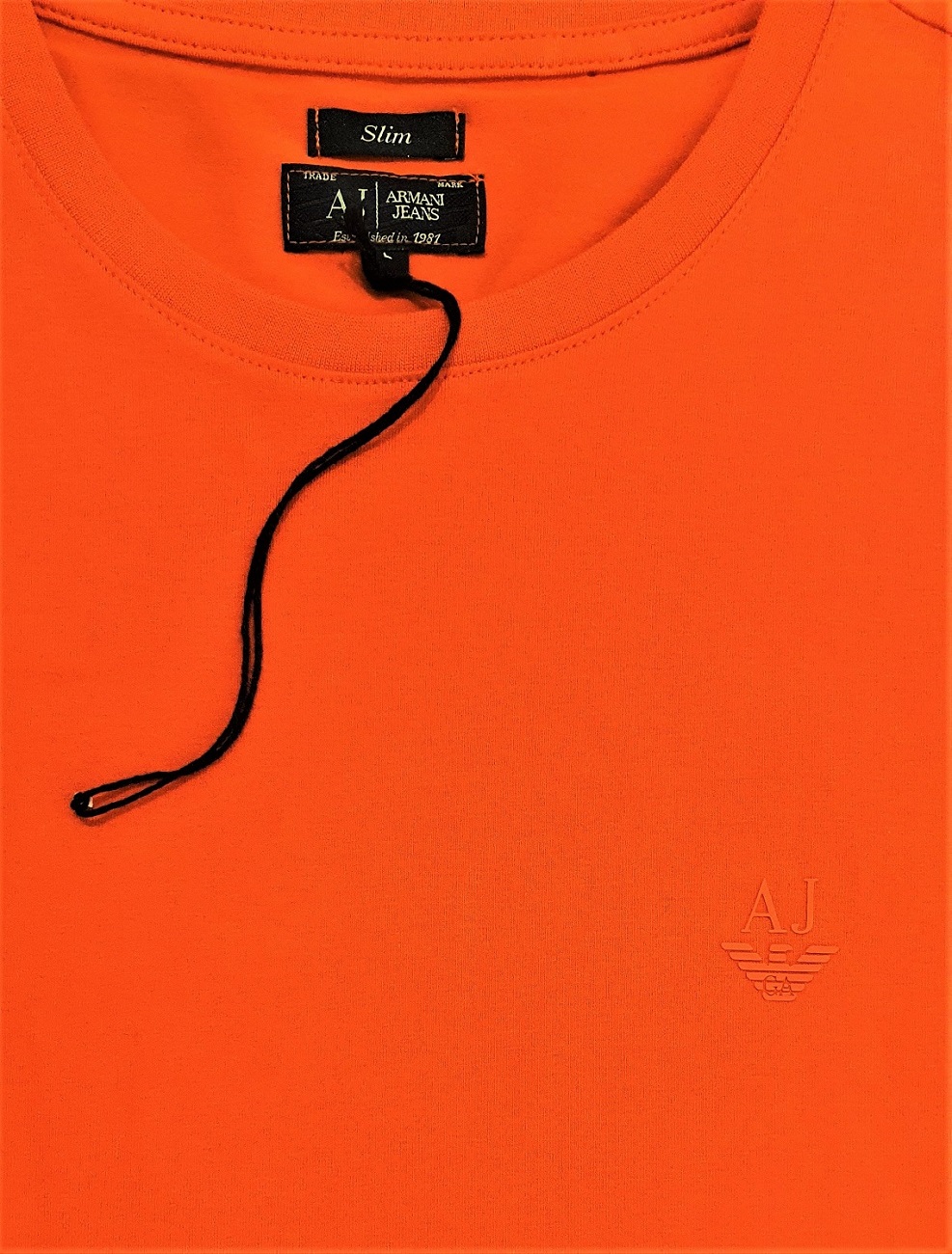 Wygodny, klasyczny męski pomarańczowy t-shirt z linii Armani Jeans. Na froncie niewielkie naklejane logo AJ z elastycznego tworzywa. T-shirt idealny dla osób z ciemną karnacją skóry i ciemnymi włosami. Uwaga ten model nie posiada oryginalnej papierowej metki, na t- shirtach są tylko plomby z oryginalnych metek. Produkt jest mimo to w pełni oryginalny pełnowartościowy, a brak metki nie stanowi podstawy do reklamacji wady ukrytej.
