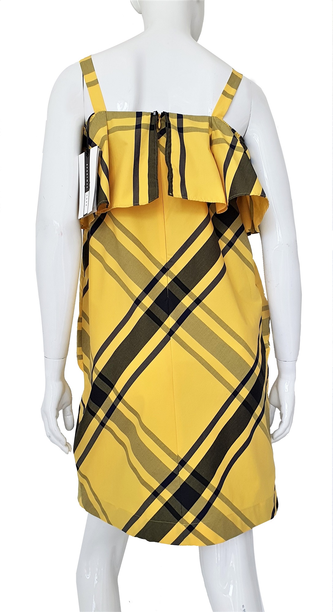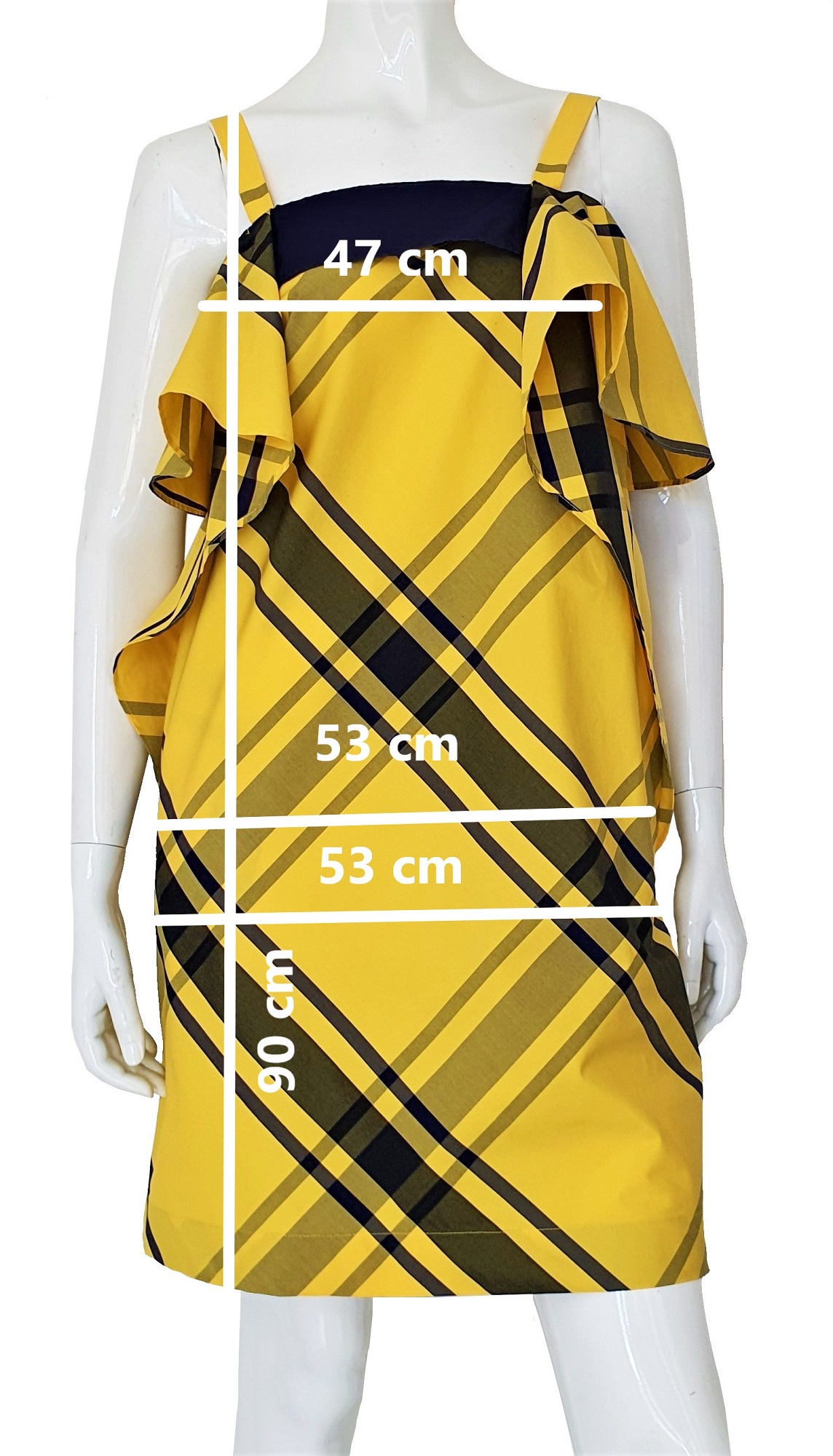 Żółta sukienka Sportmax CODE na ramiączkach na wiosnę i lato! Ze sportowej linii Max Mara Fashion Group. Żywa intensywna żółto - czarna krata. Dekoracyjna falbana dodaje nieco biustu tym paniom, które optycznie chcą go powiększyć. Oddychająca bawełna zapewni komfort noszenia altem, podobnie jak dwie boczne, głębokie, wewnętrzne kieszenie. Ramiączka nie są regulowane. Z tyłu zamek.